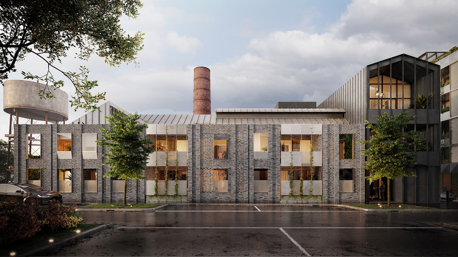 Key heritage features will be restored including the red brick exterior, conical chimney, and original tank and basin, interplaying with new architectural elements that respond to the character of the existing structure.
