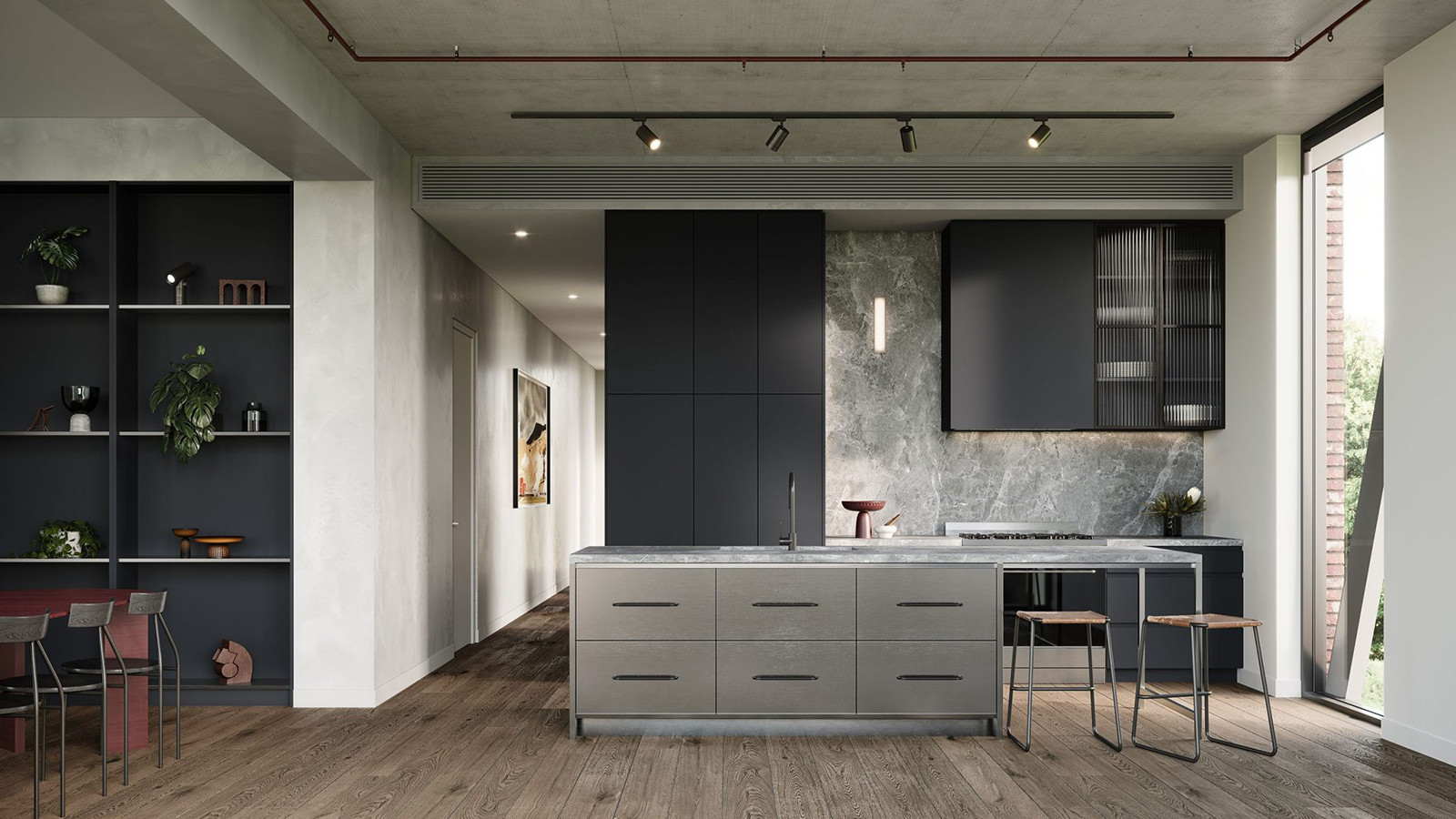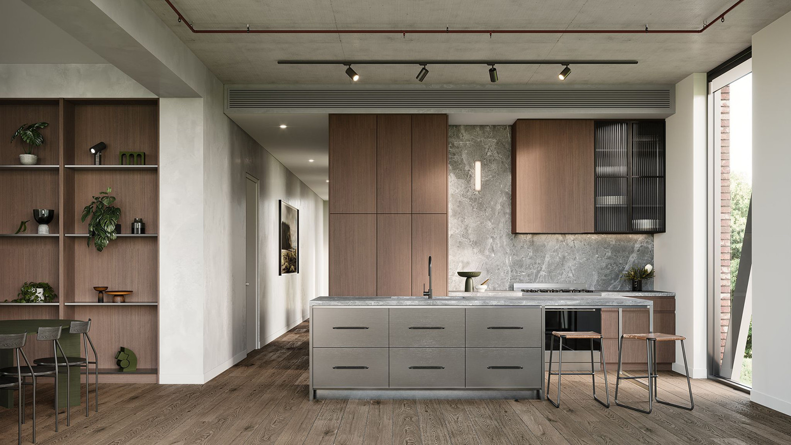 Inside, exposed concrete ceilings, timber & stainless-steel detailing and fluted glass continue the industrial scheme in a refined and contemporary way. Showcasing Ironside’s strength in complex heritage revitalisation, Boiler House honours the past while creating homes designed for modern living.